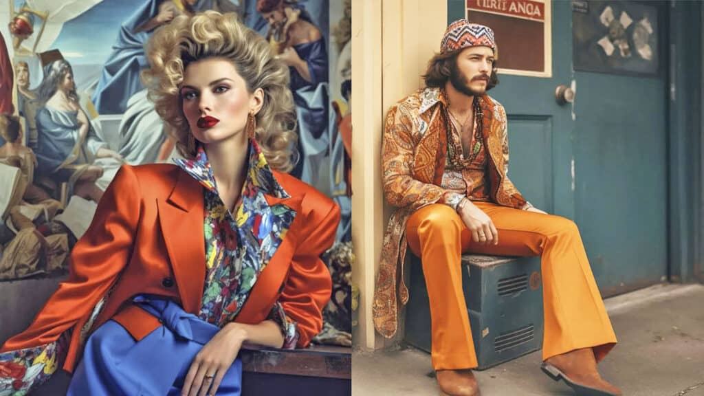 Italian designers like Emilio Pucci and Giorgio Armani took the lead in this trend, crafting vibrant and striking designs that captured the free-spirited essence of the decade. Accessories, including floppy hats and oversized sunglasses, put the finishing touches on the look.